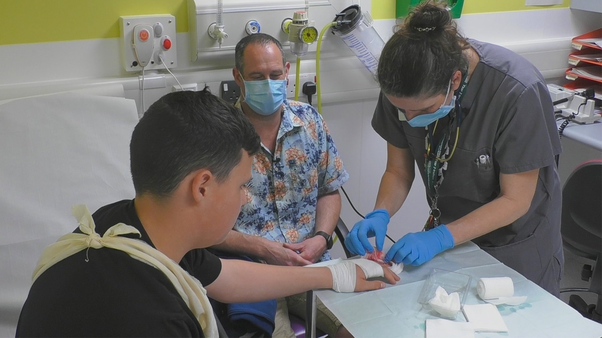 Richard, who is 35, is rushed to Queen’s in Nottingham. He collapsed suddenly at home and may be going into organ failure. Colin has sliced his hand open with a Stanley knife.