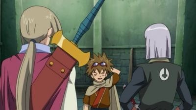 Conrad and a Knight Master named Griz join up with resistance headed up by Legolas and Daner in a nearby city and joins him in exploring the ruins of the Investiture Beings there. Shu, Bouquet, Marumaro, and Noi arrive at the city as Lotarus is encountered by Delphinium and Deathroy. Deathroy unleashes Chimera as White Brigade’s weapons fire at Lotarus. She manages to evade the weapons and Delphinium’s shadow before turning into her dragon form. While Lota deals with Delphinium and Deathroy, she also unleashes winged creatures that attacks the White Guardians. Lota takes the opportunity to escape while Delphinium and the White Guardians are occupied. Shu meets up with Legolas and Conrad and they descend into the underground caverns that are underneath the city. Noi then reads the messages found on the floors of the cavern. When Shu has Blue Dragon punch the artifact on the wall, he is sucked in.
