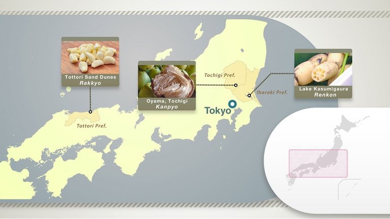 Because Japan’s landmass extends north-south through a number of different climatic zones, farmers can cultivate a wide variety of different produce, reflecting the local environment and conditions. On this episode of Journeys in Japan, we look back at episodes from past years celebrating the variety of summer vegetables that are grown around the country. We follow our reporters as they visit farms in 3 parts of Japan. We find Renkon (lotus root) being cultivated in the fertile soil and abundant water of Ibaraki Prefecture. We discover how Rakkyo (a kind of shallot) is grown in the sand dunes of Tottori Prefecture. And we introduce Kanpyo, a preserved food produced in Tochigi Prefecture, which has been part of the Japanese diet for over 300 years.
