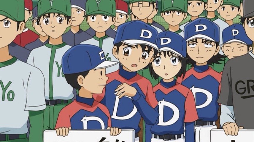 Before the fall tournament, Mifune practices at the batting cages. There, they run into the Okamura triplets, who play for their first-round opponent.