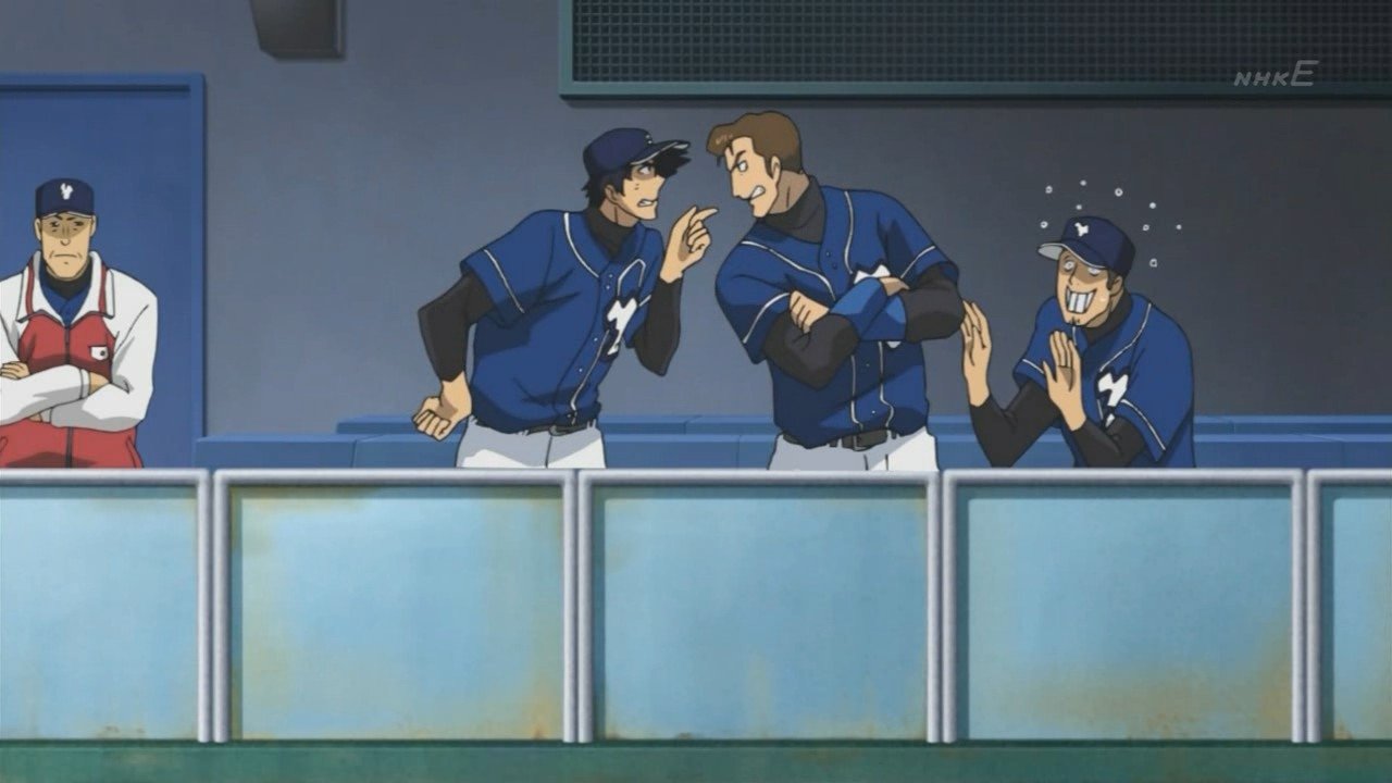 Young Japan plans the Japansese Representatives to determine which team is more suit to play in the World Baseball Cup. After having a chance and failing to score at the top of the 1st Katori is sent to the mound and later Akutsu follows. Both of them are overpowered by the experience the Japanese Representatives have and see their slider and knuckle ball hit with ease. Katori leaves with the team trailing 4-0, and Akutsu loses all confidence when that score grows to 9-0. Finally Goro is sent out to try and change things around. He reveals his gyro fork, but a fatal flaw is found in it forcing him once again to rely on his gyro fastball.